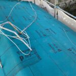 瓦屋根の葺き替え工事が進んでいます。土を撤去して下地を貼り直してからルーフィングを貼りました。これで雨が降って…