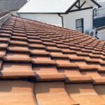 瓦屋根工事が完工しました。地瓦の並べ替えと接着、雨樋清掃もきっちりやって完了できました。 昨日から開始して今日…