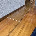 床のフローリング工事がスタートしました。玄関框と廊下のリフォームで框はリフォーム框を使って廊下はフローリングを…