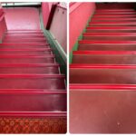 幼稚園にて階段のノンスリップタイヤを交換しました。2階から3階にかけての階段のタイヤが外れて足が…